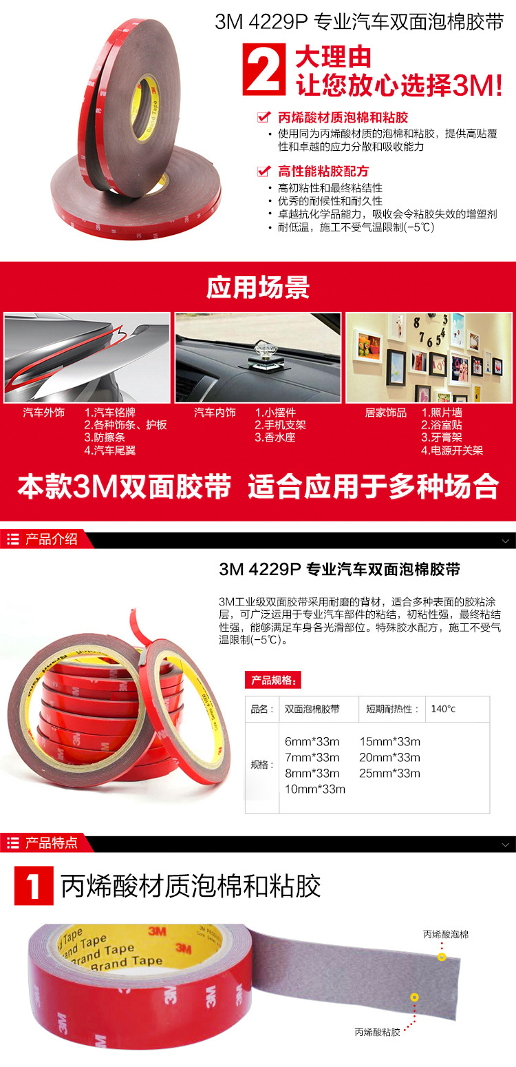 1、美国3M产品,以其高超品质及专业特点享誉全球。3M双面胶带是目前顶尖的胶带。